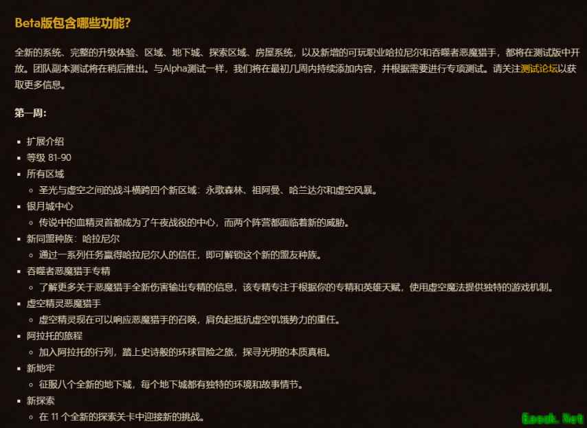 B测内容包括全新系统、完整升级体验、地区、地城、探究、房屋系统,以及全新可游玩的哈拉尼尔、噬灭恶魔猎手等。团本将在晚些时候加入。