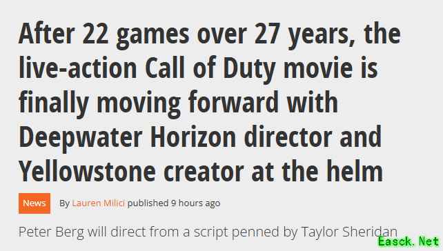 根据派拉蒙影业最新报道,彼得·伯格将与泰勒·谢里丹共同执导、编剧并制作《使命召唤》电影版,谢里丹也将担任编剧和制片人。