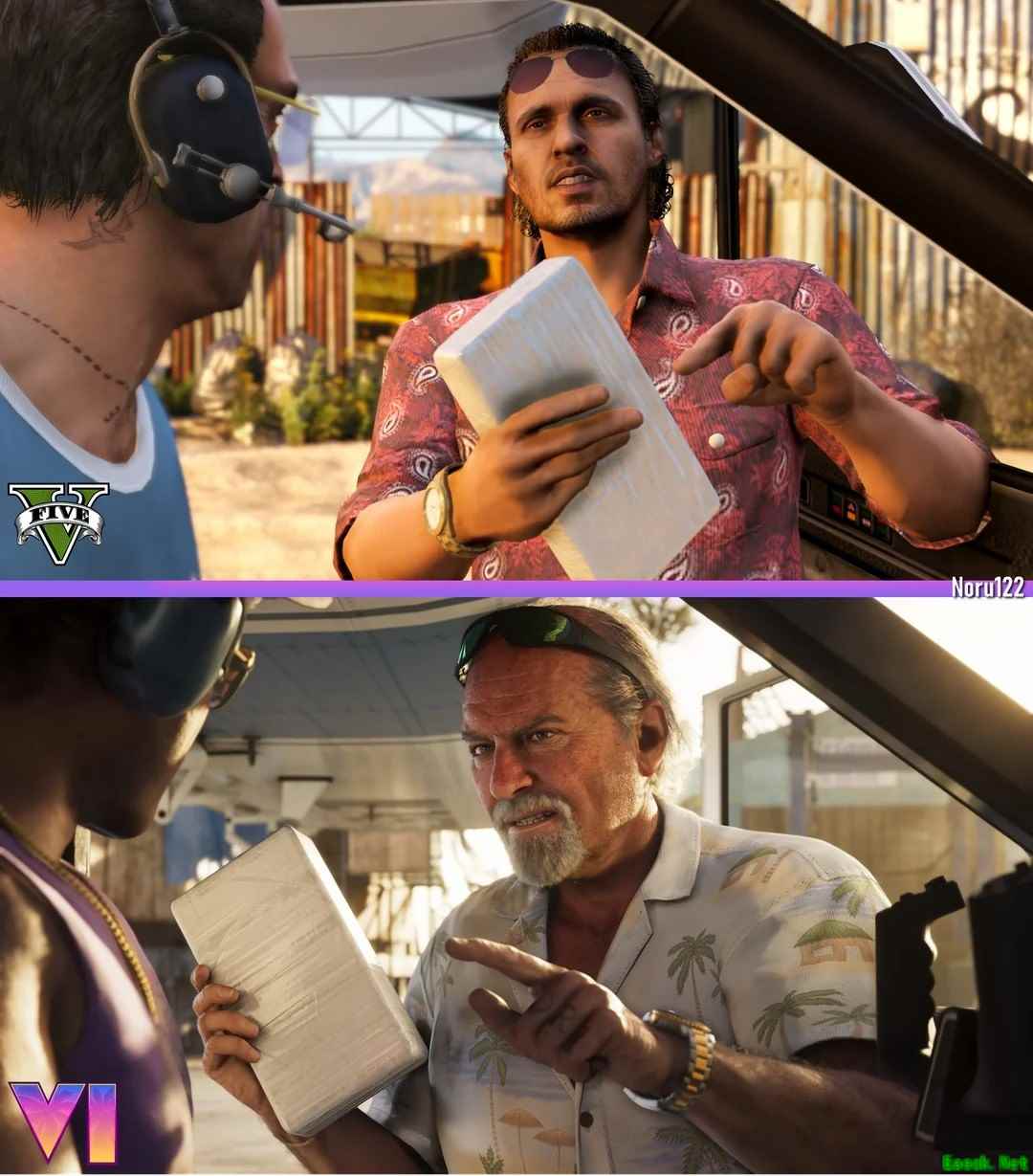 近日Reddit用户Noru122发帖,用《给他爱5》重现了《GTA6》官方截图,对比可以看到R星新作在画面上的巨大飞跃。
