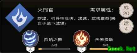 火刑官顾名思义,是以火属性为攻击特色的一个职业,同时在《地堡2》的原版设计中由物理职业“野蛮人”转职而来,因此也会兼顾到物理输出,他的两个技能详情如下: