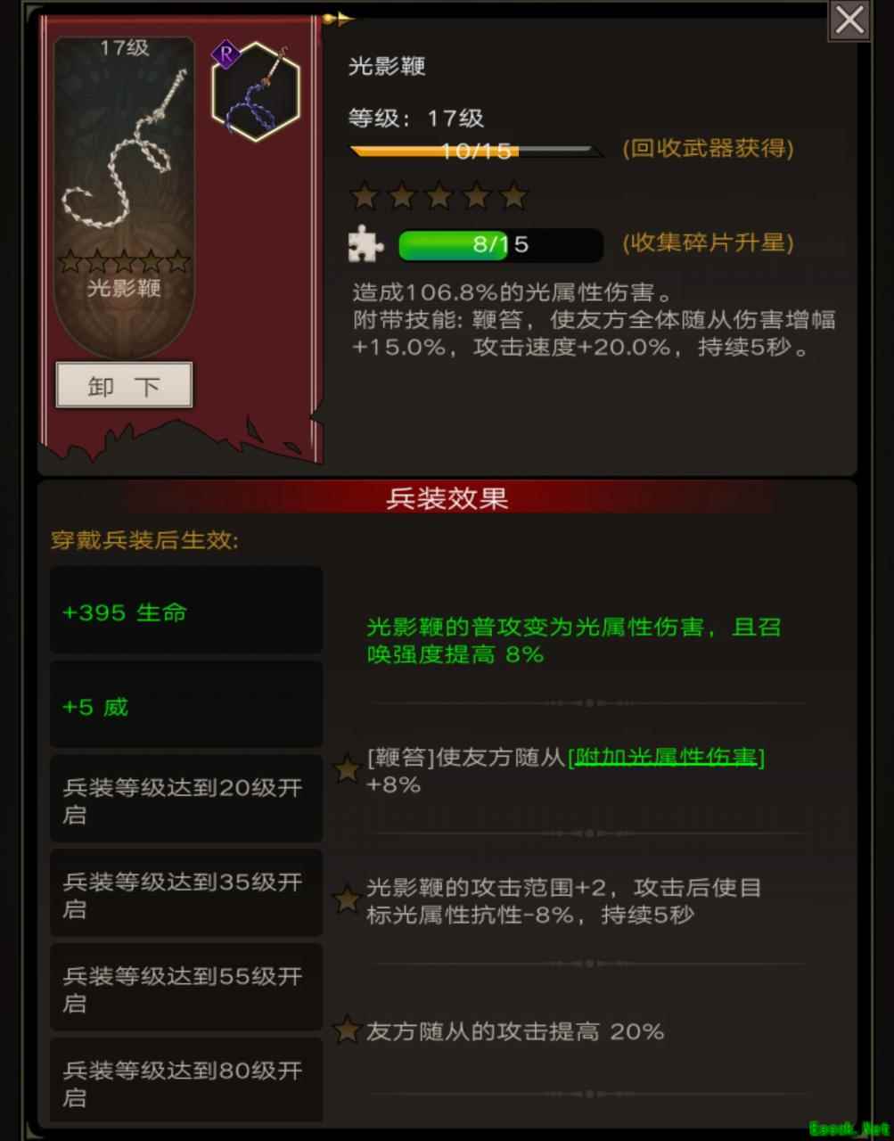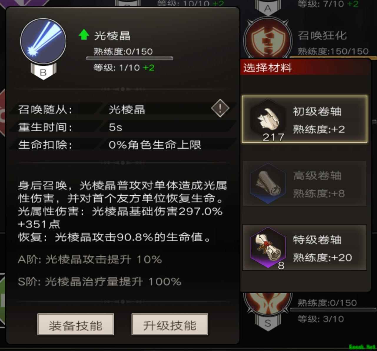 四转职业这里不做推荐,相信到了选择四转职业时,冒险者内心已经有了想选择的职业。最后召唤流比较注重冒险者们的“秘”属性,因此要尽量提高这方面的能力;而在武器方面,则建议选择《长鞭》,这种武器天生就提供了有关召唤方面的加成。