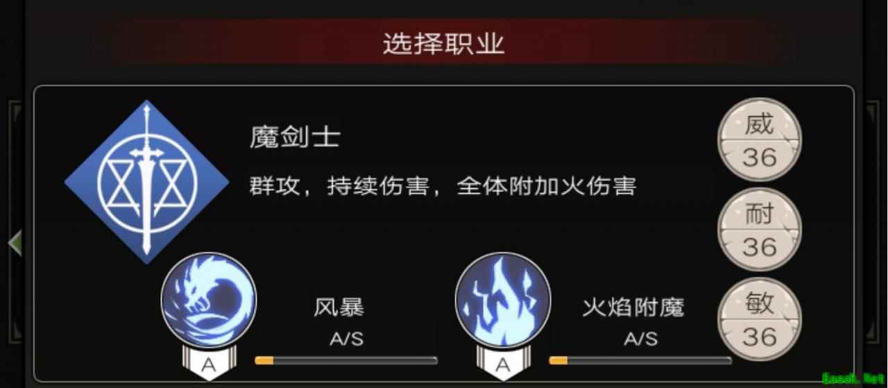 而『魔剑士』则能够使友方全体附加火属性伤害。