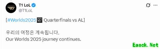 打LPL没输过!T1官方庆祝晋级:S赛旅程仍在继续!