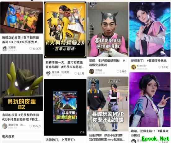 大量来自移动端的新用户涌入,同时也带动IP内容讨论量级的跃迁。经常可以在各大平台看到有关各种瓦手的讨论,社区中有关cos和二创的内容也大量涌现。仅抖音平台,#无畏契约手游 话题的播放量已经高达66.4亿,相关攻略、二创内容都获得了极高的热度。而在游戏文化与社交驱动下,玩家社区生态中也催生了诸如“随地大小瓦”、“瓦手DD”等手游生态梗文化。