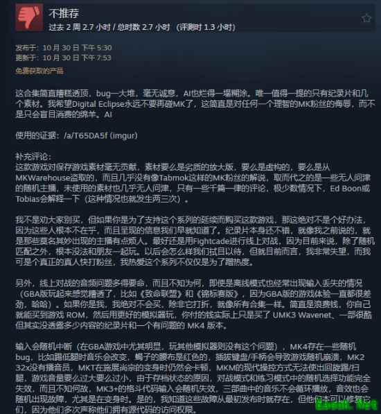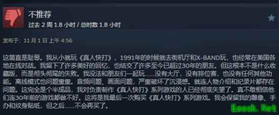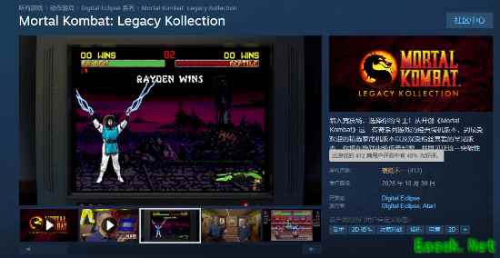 10月30日,《真人快打:遗产合集》已在steam平台发售。尽管它收录了多款经典游戏,有望成为玩家眼中一款真正的格斗合集。但截至目前,其steam商店的评价为褒贬不一。