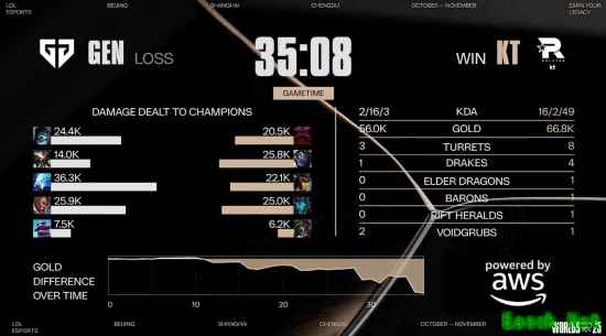 第三小局,KT再下一城首先拿到赛点!目前比分GEN 1:2 KT!