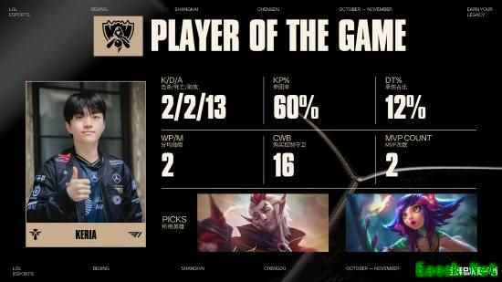 26分钟,T1在下路发起进攻,Gumayusi卡莎收获三杀,T1击败TES四人并推平基地拿下胜利。