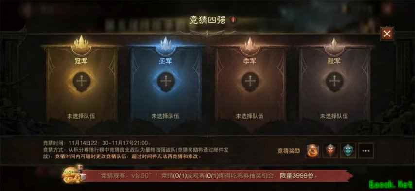只要参与竞猜或观赛,即可参与KFC“竞猜观赛,V你50”活动,有机会抽中KFC吃鸡券,全服总共限量3999份。