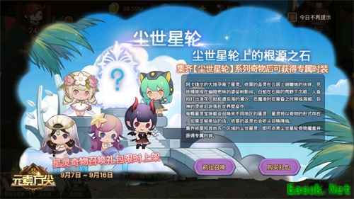 除了福利满满的中秋活动外,另一项全新游戏内容“星灵二期”,也终于揭开了神秘面纱,正式与勇者大人们见面啦!全新主题星灵“尘世星轮”现已实装,在这些星灵的帮助下,勇者大人们不仅可以获得属性加成,在集齐全部6款星灵奇物后,还可以获得专属实装哟!勇者大人还等什么,赶快进入《元素方尖》的游戏世界中,将这些可爱的星灵抱回家吧!
