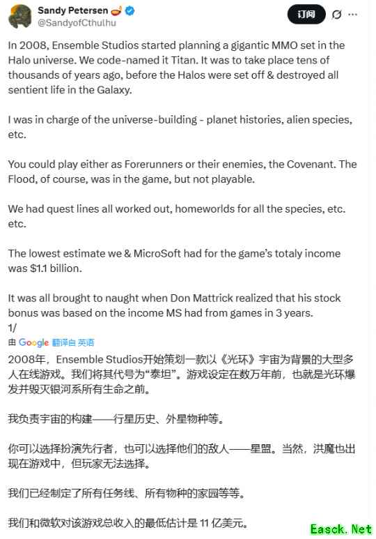 Petersen在发文中对马特里克任期作出犀利评价:“他失去的不过是一家作品销量从未低于300万份的工作室。我认为他并未对微软股东尽到责任,但话说回来,他本就是EA的‘刽子手’出身,你还能期待什么?”