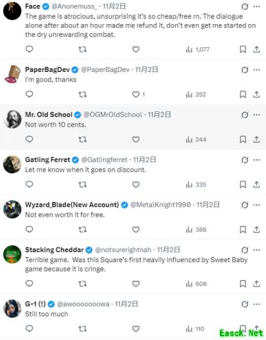 目前《魔咒之地》PS5版在亚马逊美国已跌至10美元,却仍然无人问津。评论区许多人表示:“它根本不值这价”“这游戏糟透了,毫不奇怪它这么便宜。其战斗枯燥无味。”“免费了都没人玩”“非常无聊的游戏,女主让人讨厌,对话也糟糕。”“游戏还是太贵了!”