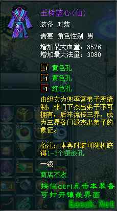 玉树蓝心(仙):增加最大血量/法量,数值区间:(2400,3600)