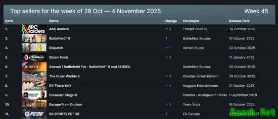 新一期Steam周销榜:搜打撤新作力压《战地6》登顶