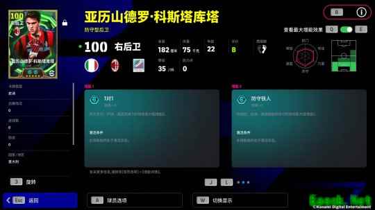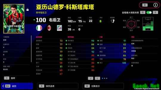 科斯塔库塔自带【后防领袖】的特殊技能,再加上100分的体力和齐全的防守技能,他稳健的防守能帮助球队守住领先优势!
