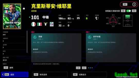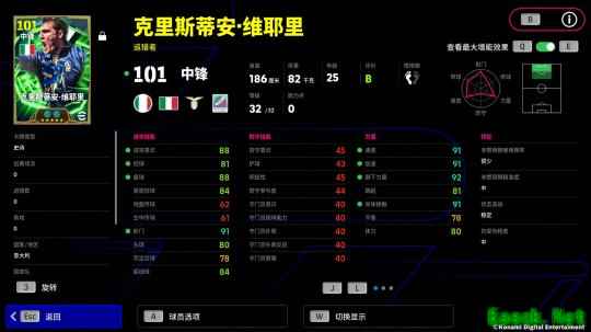 维耶里的增能属性为【突破 +3】,速度和身体接触的增强让“亚平宁坦克”碾压对手防线!他还自带 【无定型射门】 特殊技能,即使面对包夹封锁,他也能用非常规姿势从容地将球打进!