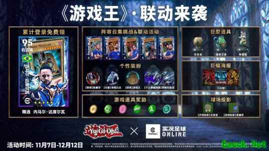【游戏王联动 登录有礼】活动期间,每日登录游戏即可获得【金币】、【随机技巧代币】、【随机增能代币】等奖励,登录七天还能获得游戏王主题 精选【内马尔】!