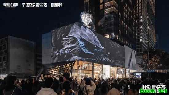 在成都月涌艺术中心,英雄联盟电竞充分结合这里的户外裸眼3D大屏,将其外部改造为巨型全球总决赛冠军奖杯和边框设计,并限时开启游戏内史诗级生物“远古巨龙”的降临仪式,使这里成为全球电竞爱好者们的打卡圣地。