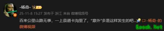 游戏科学联合创始人、《黑神话:悟空》美术总监杨奇近日在社交媒体上分享了一段旅行中的“小插曲”——他所乘坐的汽车在县道上不慎陷入沟中。