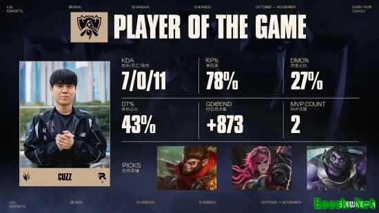 第三小局,CUZZ蒙多势不可挡,KT率先拿到赛点!目前比分T1 1:2 KT。
