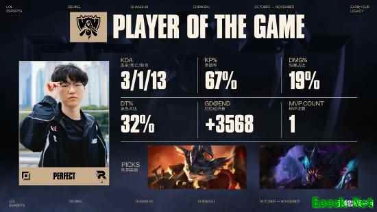 36分钟,双方围绕大龙展开团战,deokdam库奇和PerfecT奎桑提分别双杀,KT团灭T1并推平基地拿下胜利。