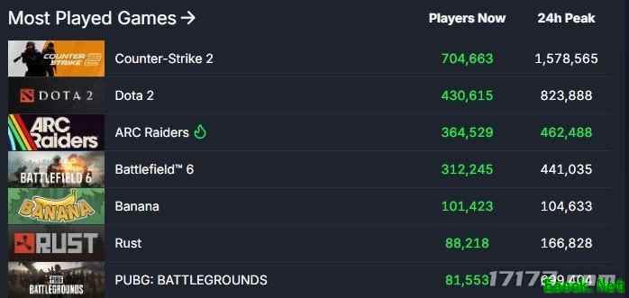 由Embark Studios开发的第三人称PvPvE“搜打撤”射击新作《ARC Raiders》正以惊人的后劲刷新行业认知。据SteamDB最新数据显示,游戏在发售后的第二个周末,同时在线玩家数突破46万大关,强势攀升至Steam全球热门游戏榜第三位,仅次于长青巨头《CS2》与《Dota2》。