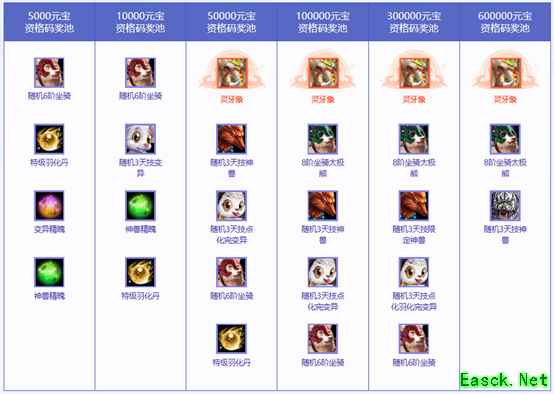 经典版玩家则有机会获得八阶坐骑灵牙象、八阶坐骑太极熊、随机六阶坐骑以及随机变异、神兽等幸运大礼。