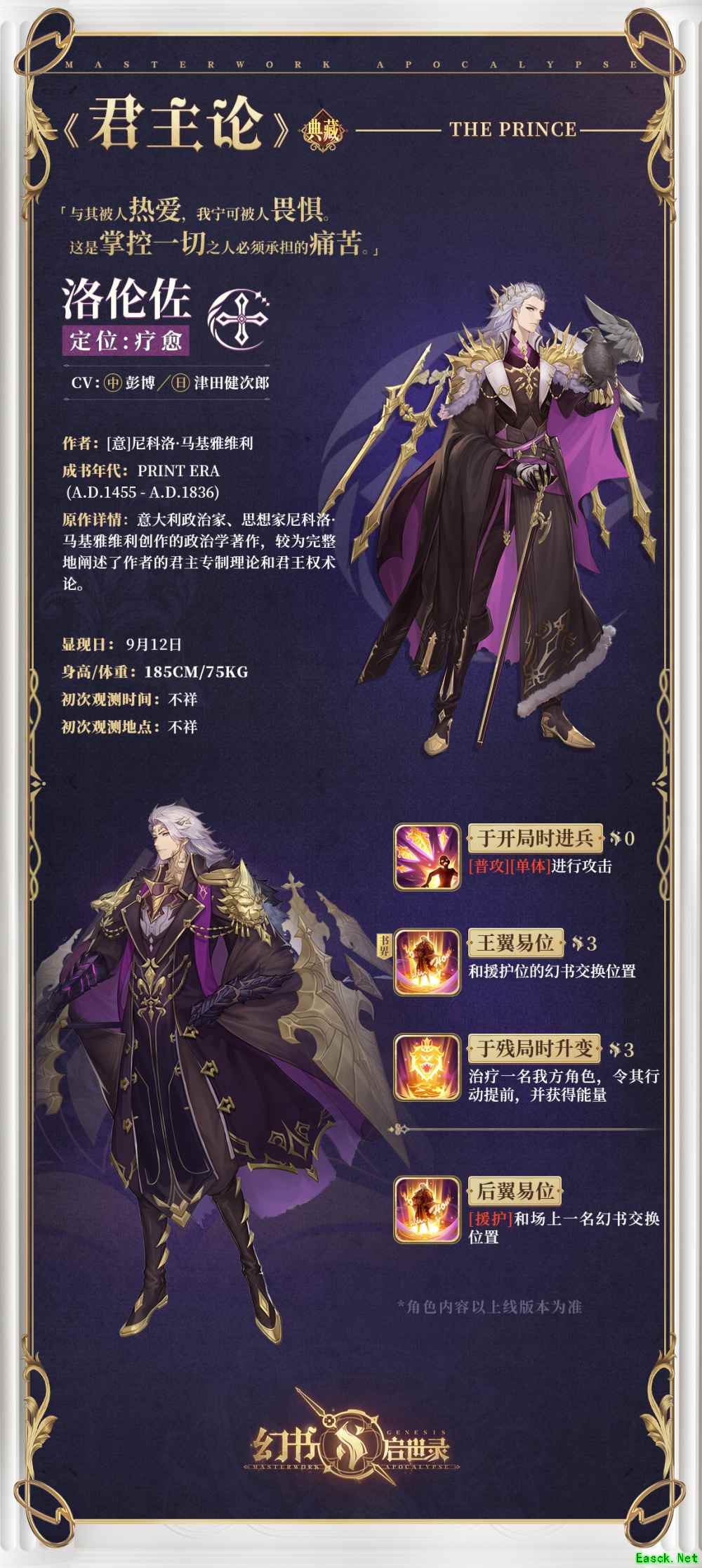 《君主论》·洛伦佐光临阿克夏书馆,他深谙权谋,权杖一响,作为君王的他,杀伐果断,教众人俯首称臣,宛若雄鹰用双翅划破了宁静,将乌云撕裂,只为迎接属于他的黎明。