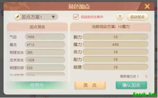 苍岚在战斗中可以追求群体输出、也可以走单攻爆发路线,因此在加点选择上,应该把绝大多数的点数加到魔力上,这样才能更好地提升自己的法攻。10点自由点的分配,至少要有6点以上分配给魔力。