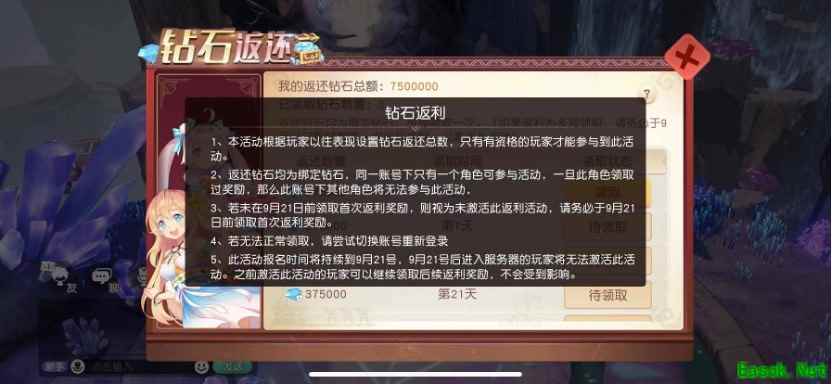 1、本活动根据玩家历史充值记录进行钻石返还,返还的钻石均为绑定钻石。