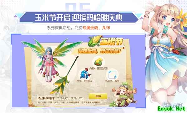 伴随着新版本的上线,还有一场全民狂欢庆典活动绝对不容错过!各方瞩目的玉米节系列庆典活动将于9月8日至9月28日震撼启动,活动包括了玉米收获季、爱的抱抱、音符跳动等。活动形式多样,趣味十足,并且参与活动就可以获得【玉树琼枝】道具,可用于兑换【坐骑解锁证-飞天玉米】等稀有外观道具,音符跳动限时活动中,通过完成任务积攒积分,还可以兑换到鲨鱼头饰等奖励,赶快行动起来吧。