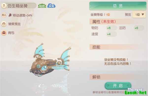 值得一提的是,水族馆的奖励非常丰厚,只要捐赠鱼类数量达到要求,就能获得专属坐骑道具【坐骑解锁证-仿生箱】。这是一个鱼型外观的金属铠甲造型坐骑,骑乘上这个媲美潜水艇的全新坐骑遨游海底世界,绝对是独特的体验!