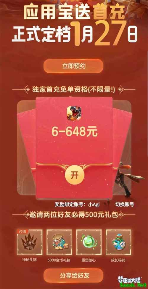 【全民狂欢:预约玩家注册就送首购礼包,达到指定等级最高送50连抽】