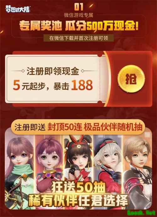 微信游戏专属,猎狼小队集合瓜分500万现金红包!注册即领现金,5元起步,最高暴击188元,还有价值1000元的极品高战礼包助力玩家梦想启程。在微信下载并首次注册游戏,还可领取到微信游戏专属等级礼包,每日登录游戏还能参与抽奖,百万豪礼任性抽。