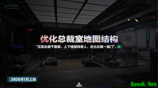 航天基地2.0也正在持续改进中,预计2026年1月上线。新航天基地将聚焦反制“堵桥”问题,并同步优化总裁室地图结构,让总裁室打起来更好玩。此外,航天基地2.0也会新增水体区域,希望新的航天能给干员朋友们提供更丰富的战术博弈空间。