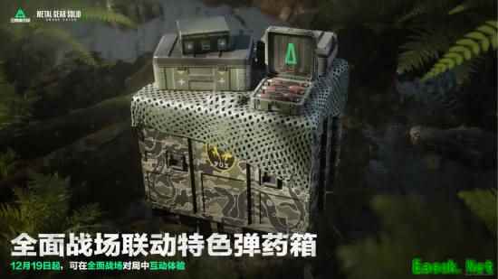 在全面战场中,也将加入特色的联动弹药箱,融合了《潜龙谍影△:食蛇者》的经典元素。当然,联动活动武器外观也少不了,12月19日起,完成联动活动可免费获取联动专属传说武器外观【SR-3M紧凑突击步枪-潜龙谍影】外观,希望大家玩的开心!