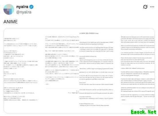 作者也在文章中感谢了动画相关的主创人员,恳请大家欣赏并支持动画。目前也在跟律师沟通,待事件正式解决之时将再次报告后续。今年早些时候作者也发布了长文,表达了WSS与制作人齐藤大地在职期间的诸多问题。