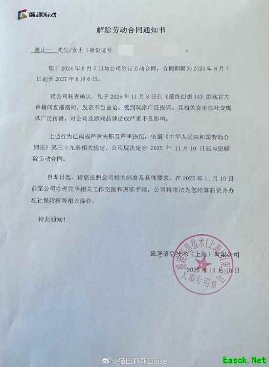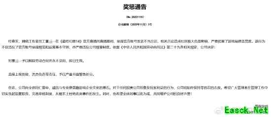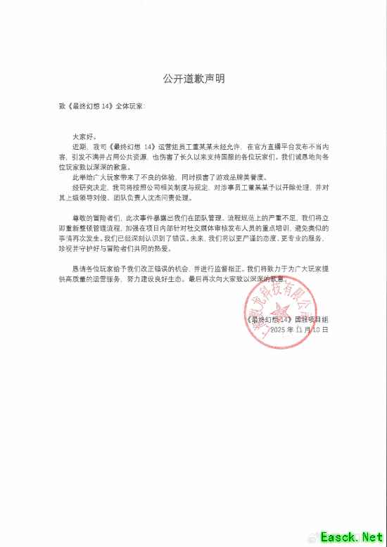 今日,《最终幻想14》官方发布公开道歉说明,对涉事员工予以开除处理,并对其上级领导问责处理。