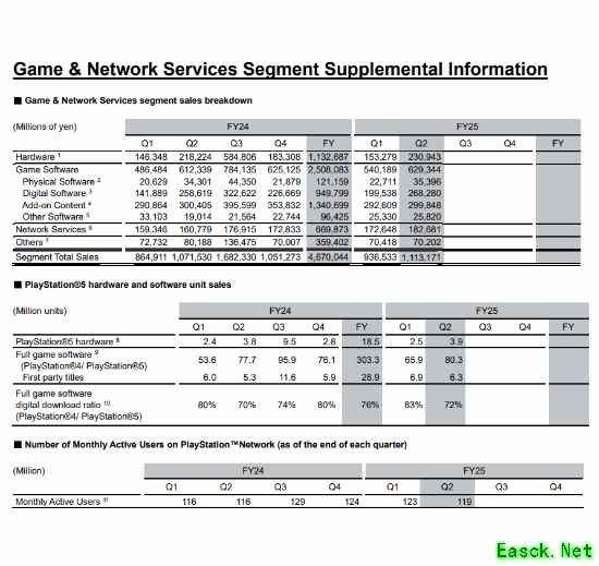 PSN月活用户为1.19亿人,同期增长0.03亿人