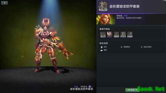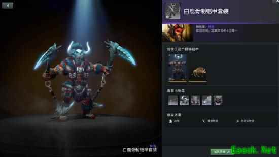 兽王套装骨制铠甲拥有三种额外款式可供打造,分别为白鹿、金色和棱彩,其中棱彩款式的武器部件棱彩暗红锁镰为不朽品质,可改变兽王野性之斧的技能图标和特效。