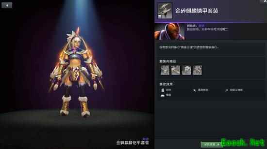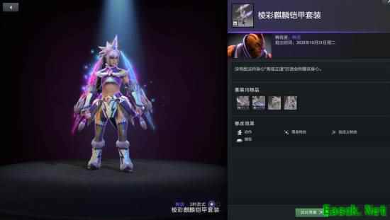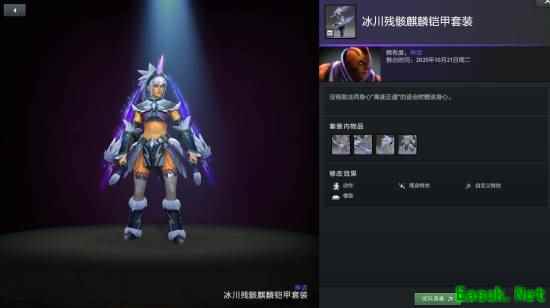敌法师身心套装麒麟铠甲拥有三种额外款式可供打造,分别为冰霜残骸、金色和棱彩。