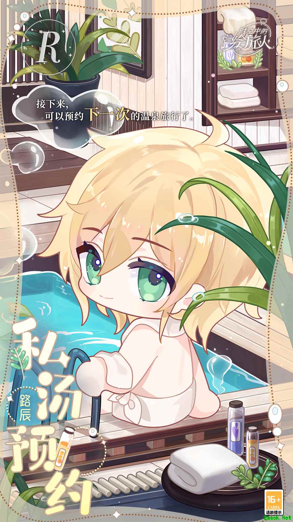 活动[温泉小铺]中新增[温泉Q版画灵礼包],可兑换艾因·[山中温泉]、路辰·[私汤预约]、罗夏·[完美画作]、司岚·[品鉴研讨]、叶瑄·[秘密时光]。小铺中共有礼包30个。初次获取角色温泉Q版画灵时,可解锁专属短信。