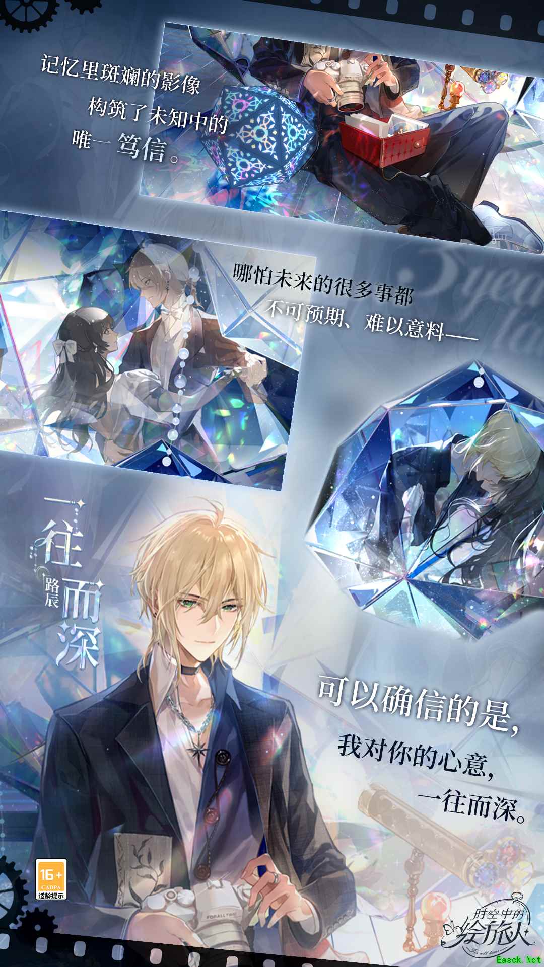 《时空中的绘旅人》是一款多时空恋爱冒险手游,由阿杰、夏磊、姜广涛、谢添天、赵路等声优加盟,全剧情配音营造沉浸式体验,精致CG呈现美术匠心水准。