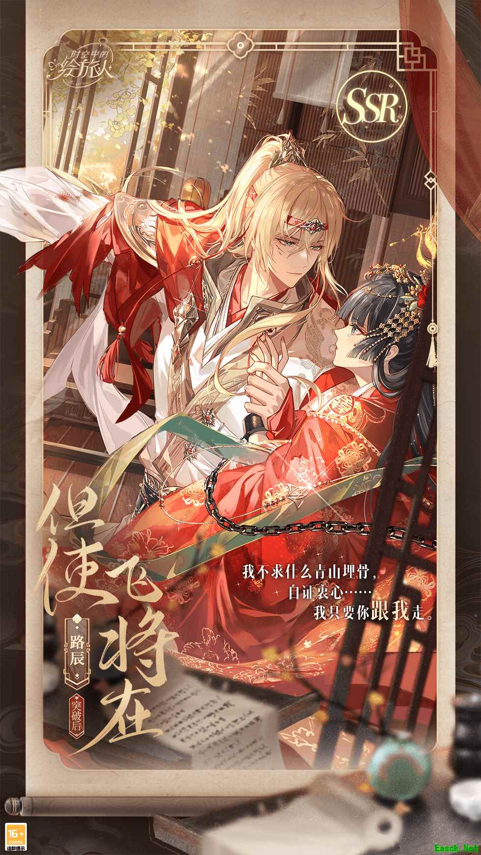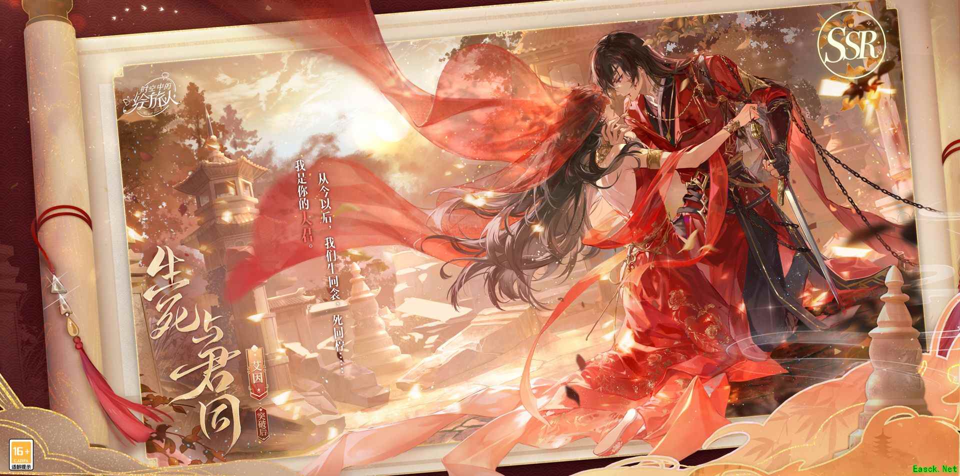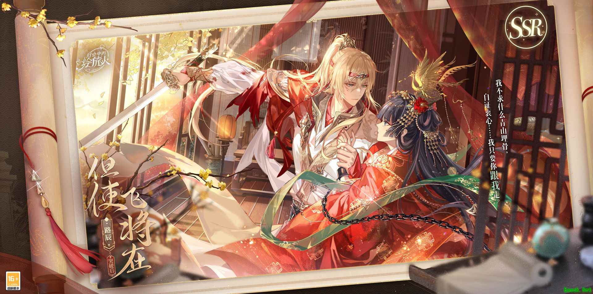 鸳雁继夜传情,两心缔结佳期;长街锣瑟鸣奏,市肆百里披红;盈盈凤冠霞帔,双双合卺许月;红书款定,白首相盟,与卿世生厮守。《时空中的绘旅人》全新七夕活动「与卿书」7月28日开启!本次版本将同期上线5张精美典藏卡牌艾因SSR[生死与君同]、路辰SSR[但使飞将在]、罗夏SSR[挥洒合昏昼]、司岚SSR[照室红龙鸾]及叶瑄SSR[若算机筹处]。卡牌突破后呈现横幅卡面,具备卡面流光效果,还可设为登录界面。此外,5位男主将穿着精美的婚服出现在剧情中,玩家可通过服装礼包解锁永久服装。