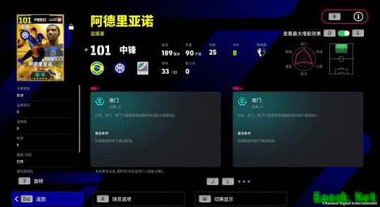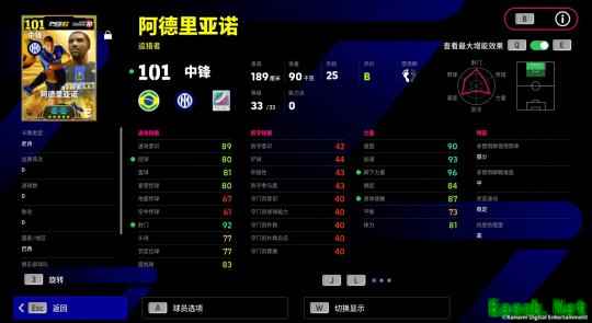 阿德里亚诺的增能属性为【射门 +3】,射门和脚下力量的增强让“梅阿查国王”再现充满暴力美学的射门!