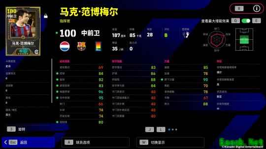 范博梅尔的增能属性为【传球 +3】,这位红蓝指挥官在中场运筹帷幄,梳理球队的进攻路线!