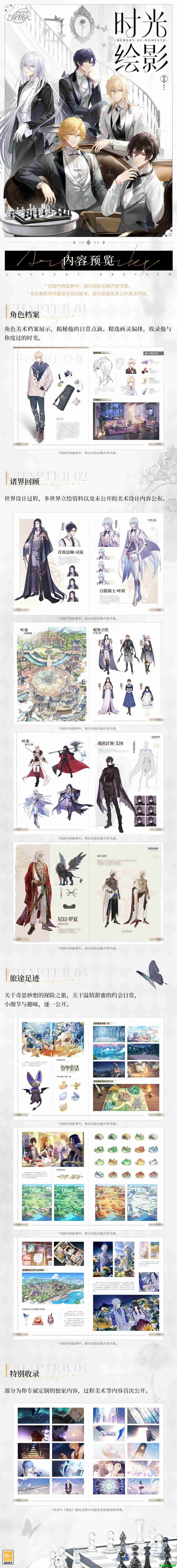 《<时光绘影>时空中的绘旅人官方美术集》分为角色档案、诸界回顾、旅途足迹、特别收录4个部分。从男主信息、主线时空到活动美术资源,收录截止「录异记(含)」前部分活动美术内容。大16开软精装,300P全彩印刷,极具纪念意义与收藏价值。