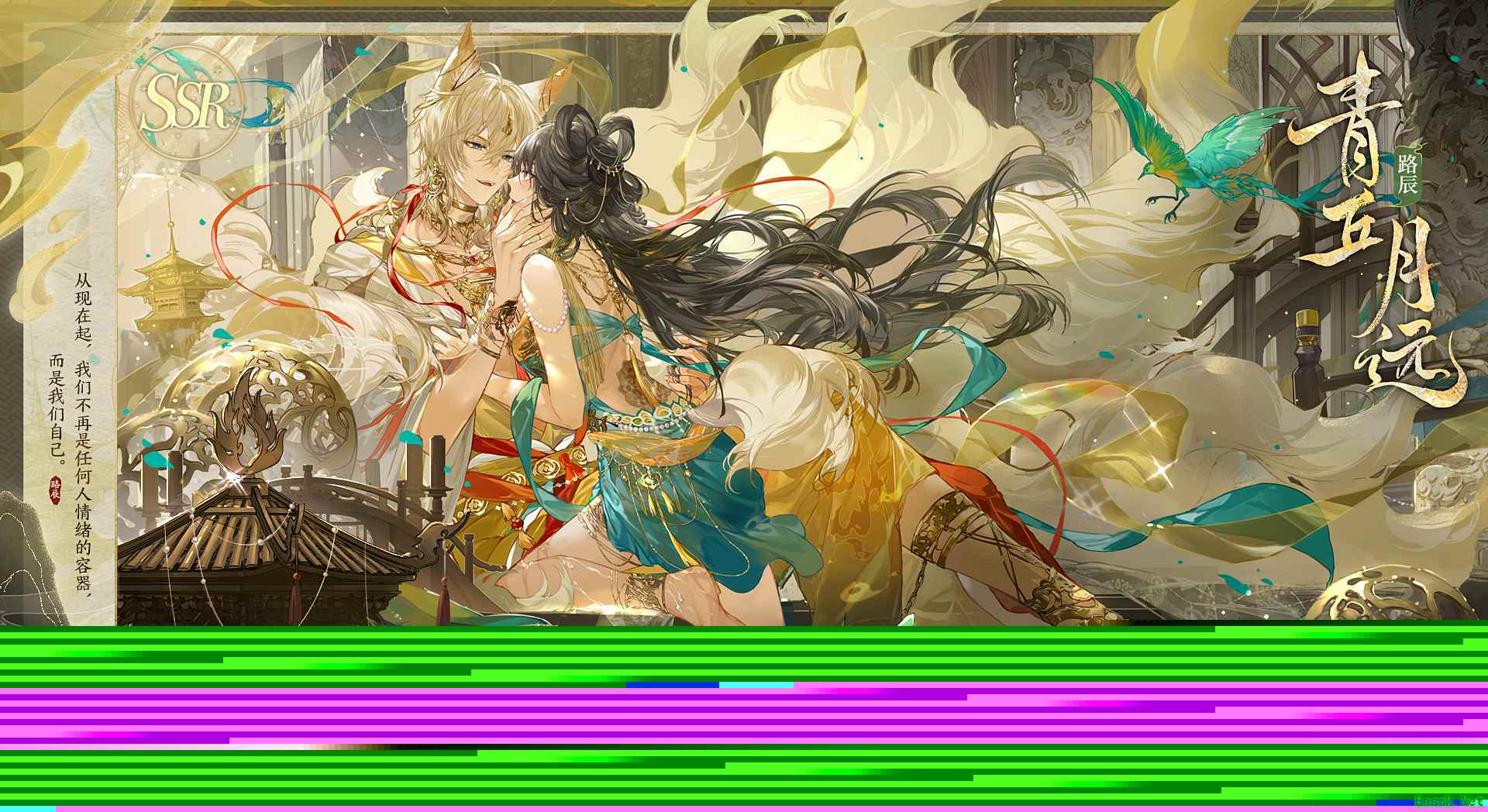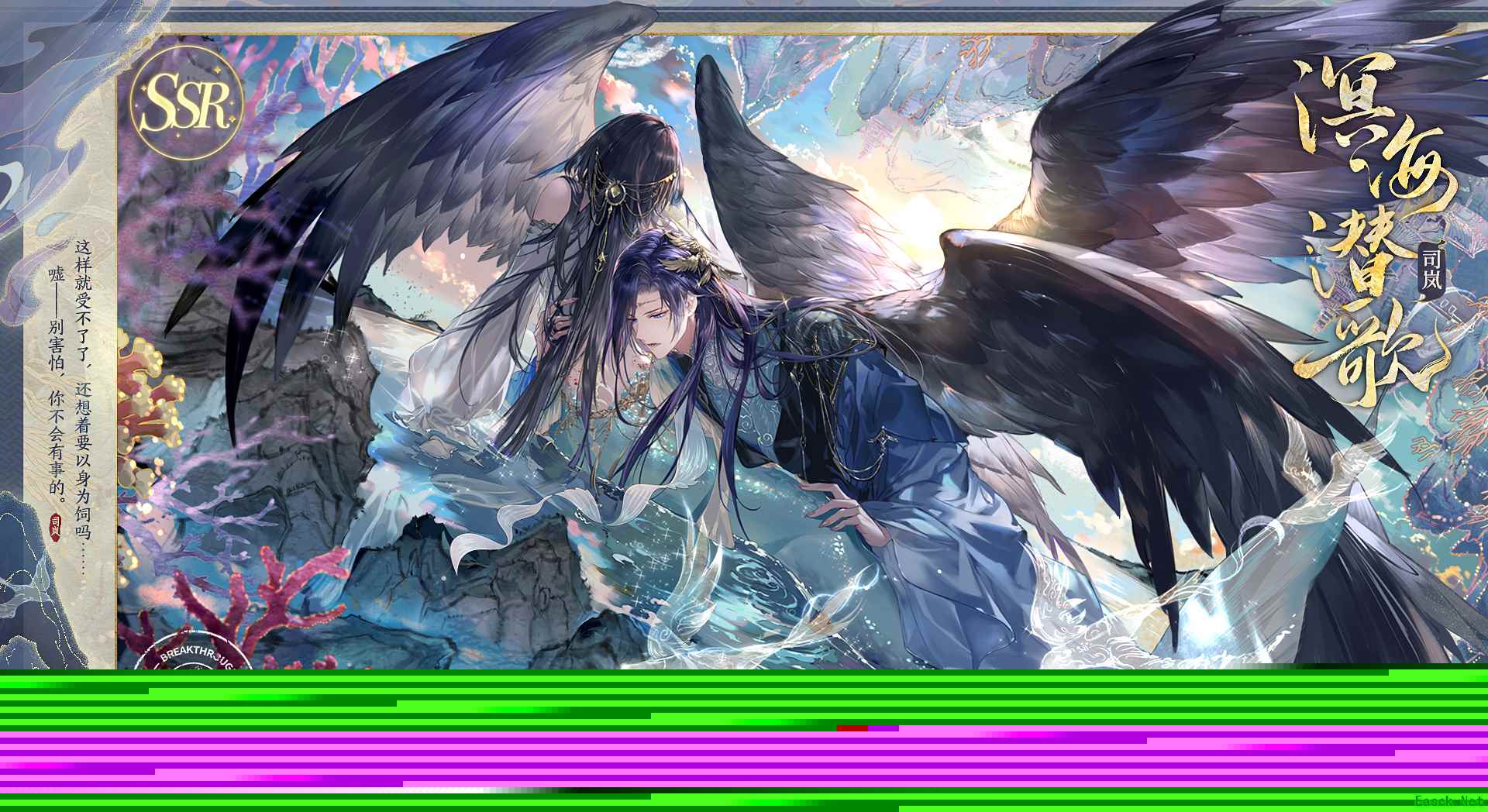 活动画灵艾因SSR[翔于千仞]、路辰SSR[青丘月远]、罗夏SSR[徒梦生花]、司岚SSR[溟海潜歌]、叶瑄SSR[于风衔愿]限时返场,获取概率提升。