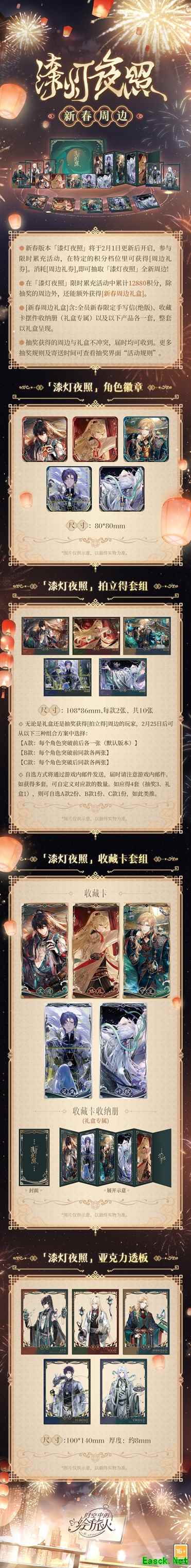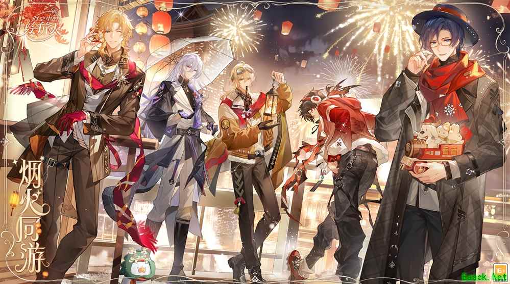 2月1日更新后 - 2月22日05:00,参与「漆灯夜照」限时累充活动达1280积分,即可永久解锁版本限定[开屏寄语·烟火同游],开屏内含5段对应男主的主题寄语,可前往[故事]-[卡组剧情]中倾听。开屏寄语获取后可同时获得[烟火同游]开屏画面的永久使用权。