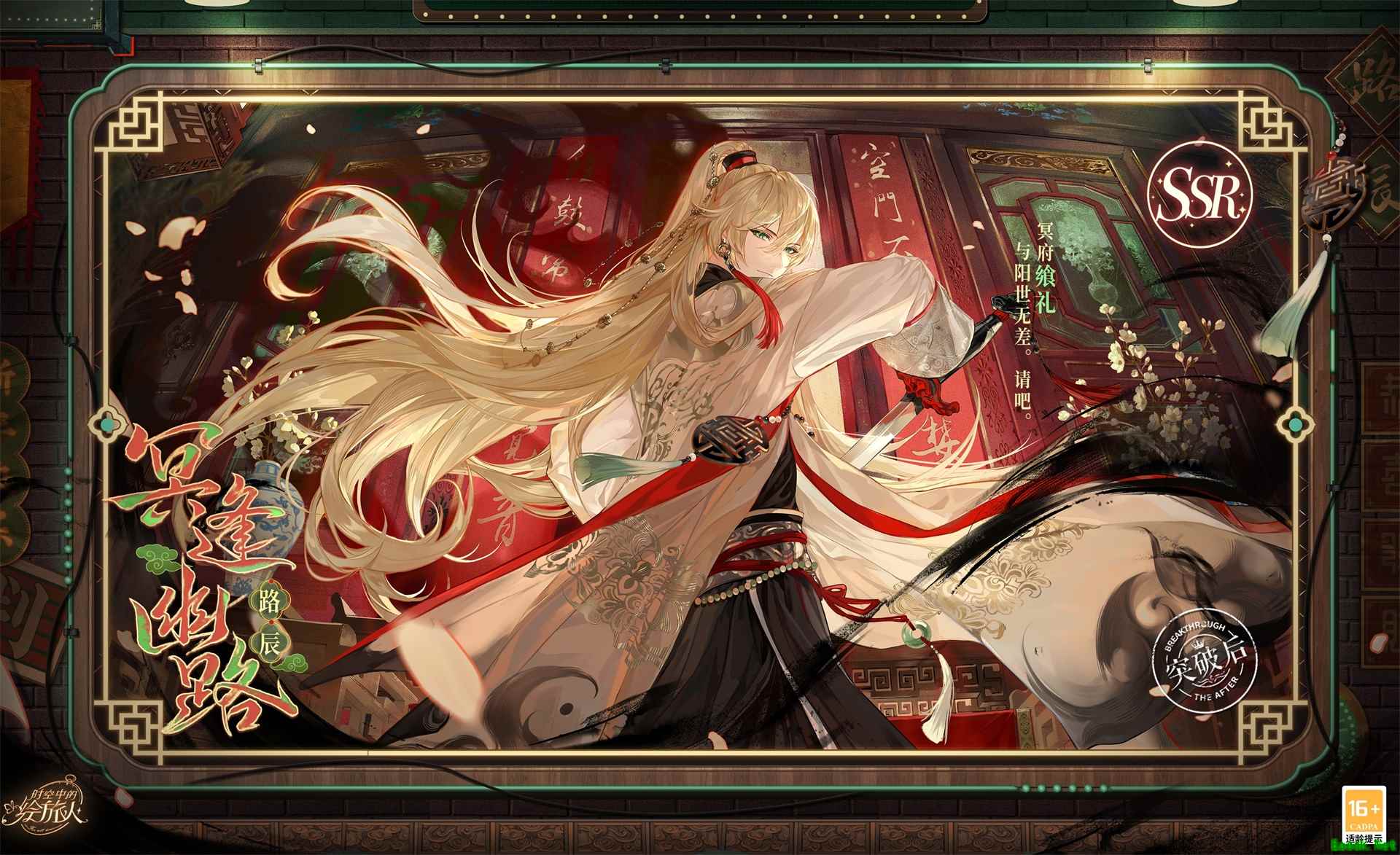 [冥逢幽路]突破后为横幅卡面,拥有场景特效的流光效果,可设为登录界面。画灵具备卡组剧情。
