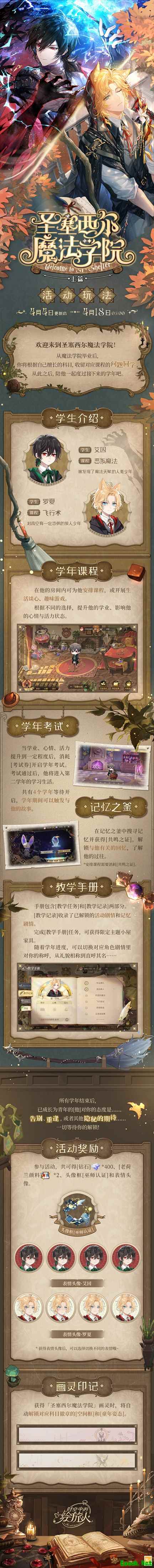 全新活动「圣塞西尔魔法学院」上篇将于4月4日更新后开启。魔法漫旅,时光再会。如果离别是为了更好的相遇,那我已准备好与你重逢。